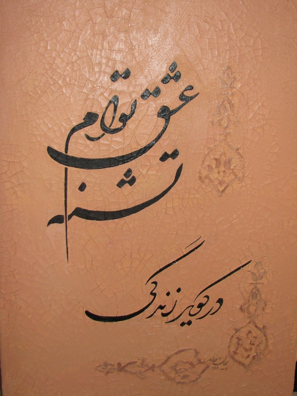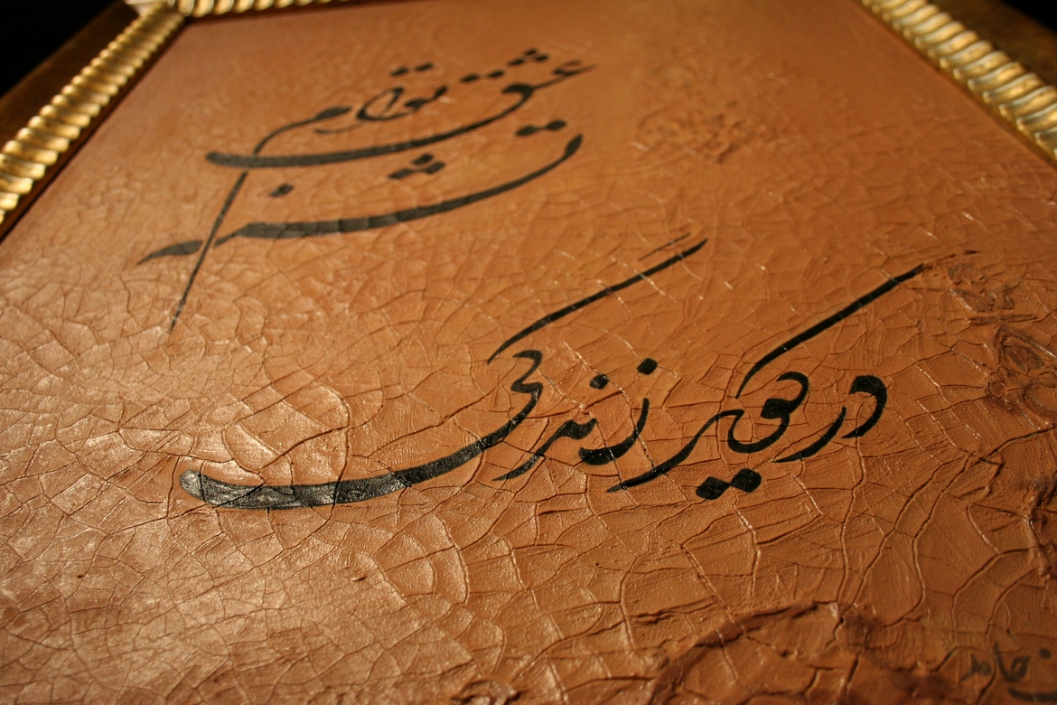 Calligraphic style: Cursive nastaliq (shekasteh)