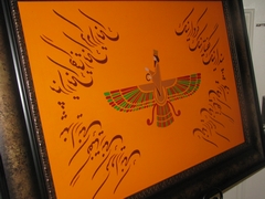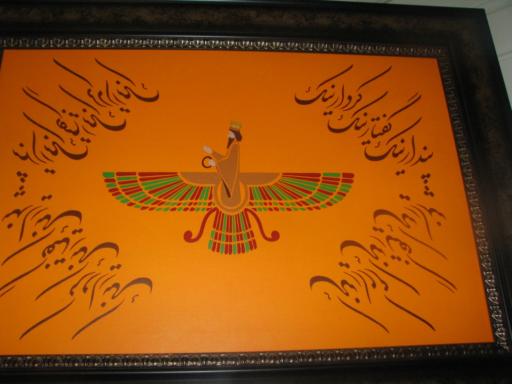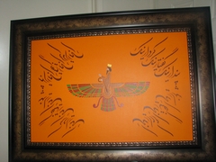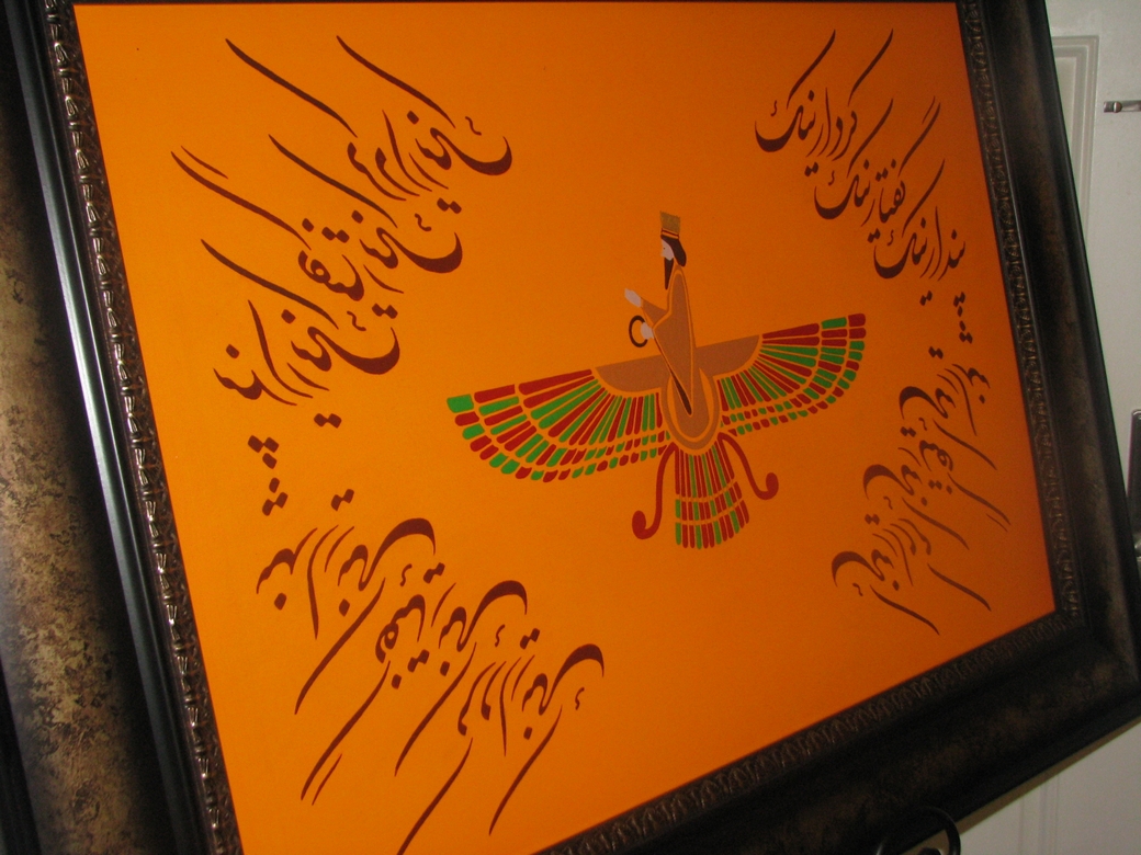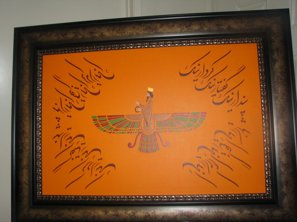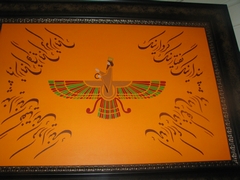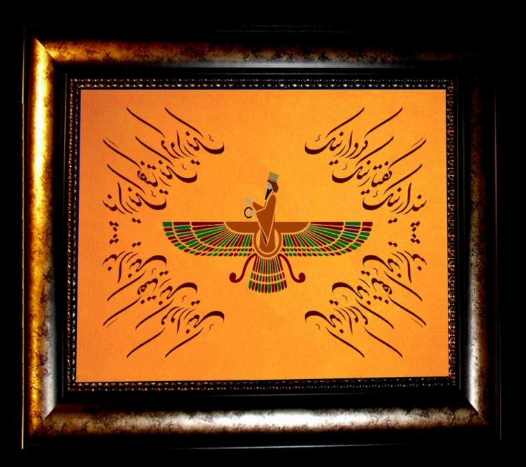 Name of the Art Piece: Ahuramazda; PENDAAR-E NEEK,GOFTAAR-E NEEK, KERDAAR-E NEEK (good thoughts, good words, good deeds)