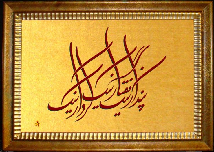 Name of the Art Piece: PENDAAR-E NEEK,GOFTAAR-E NEEK, KERDAAR-E NEEK (good thoughts, good words, good words)-GOLD