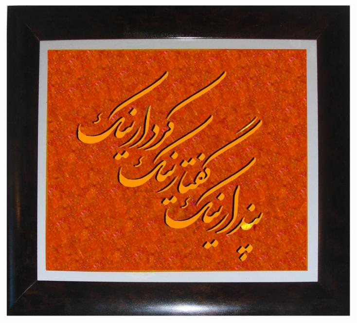 PENDAAR-E NEEK,GOFTAAR-E NEEK, KERDAAR-E NEEK (good thoughts, good words, good words)-Yellow on Orange