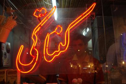 A Persian Calligraphy Store Sign in Tehran (a Restaurant similar to KFC); the sign says " Kentucky"
