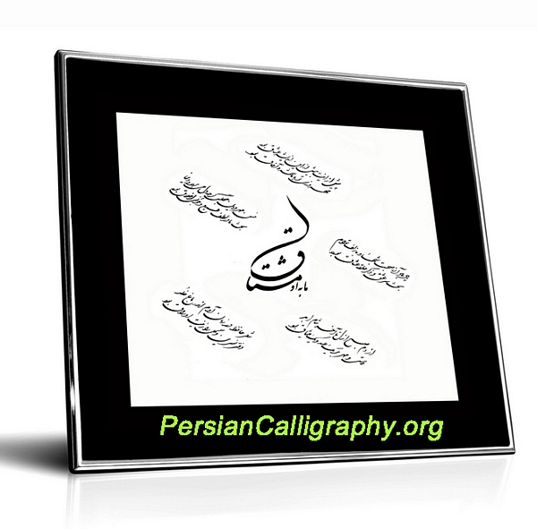 Description: This is a custom framed art that has been for a 30th anniversary. This is a Hafez poem that translates: